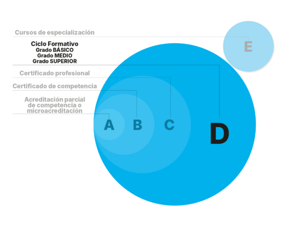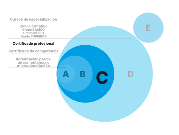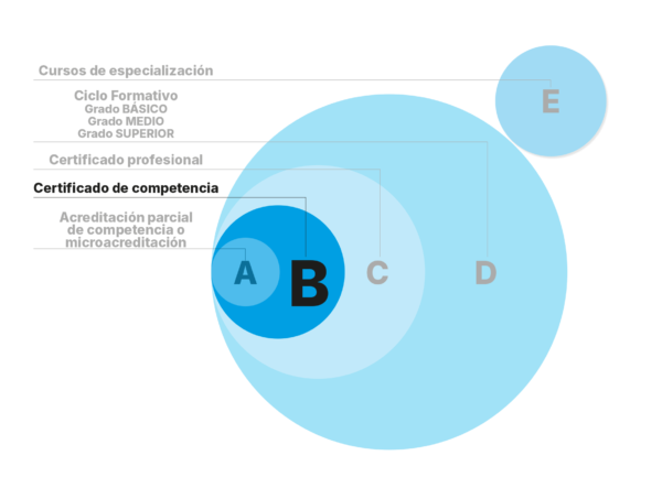 Se trata de una oferta parcial y acumulable. Cada certificado de competencia coincide con un módulo profesional incluido en el Catálogo Modular de Formación Profesional.